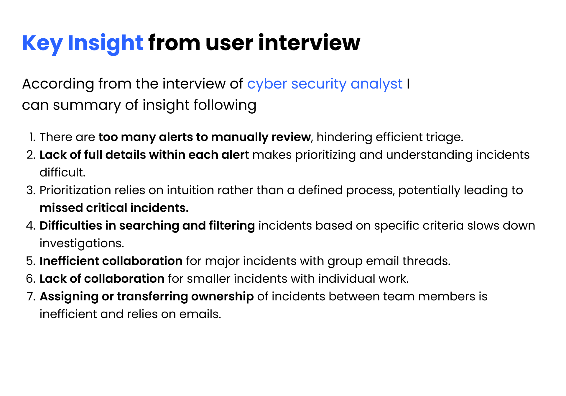 As part of the empathy research process, I conducted user interviews with three participants who are cybersecurity analysts. The interviews aimed to gain insights into their experiences, challenges, and perspectives within the cybersecurity domain. The following questions were asked, and their responses are summarized below.